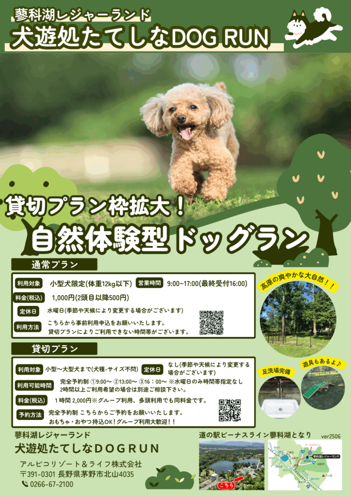 「犬遊処たてしなドッグラン」貸切プランのご案内