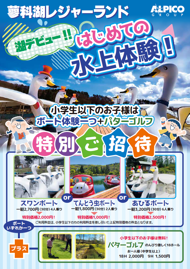 さらに、パターゴルフも特別ご招待!お子様の初めての水上体験にぴったりの内容です。